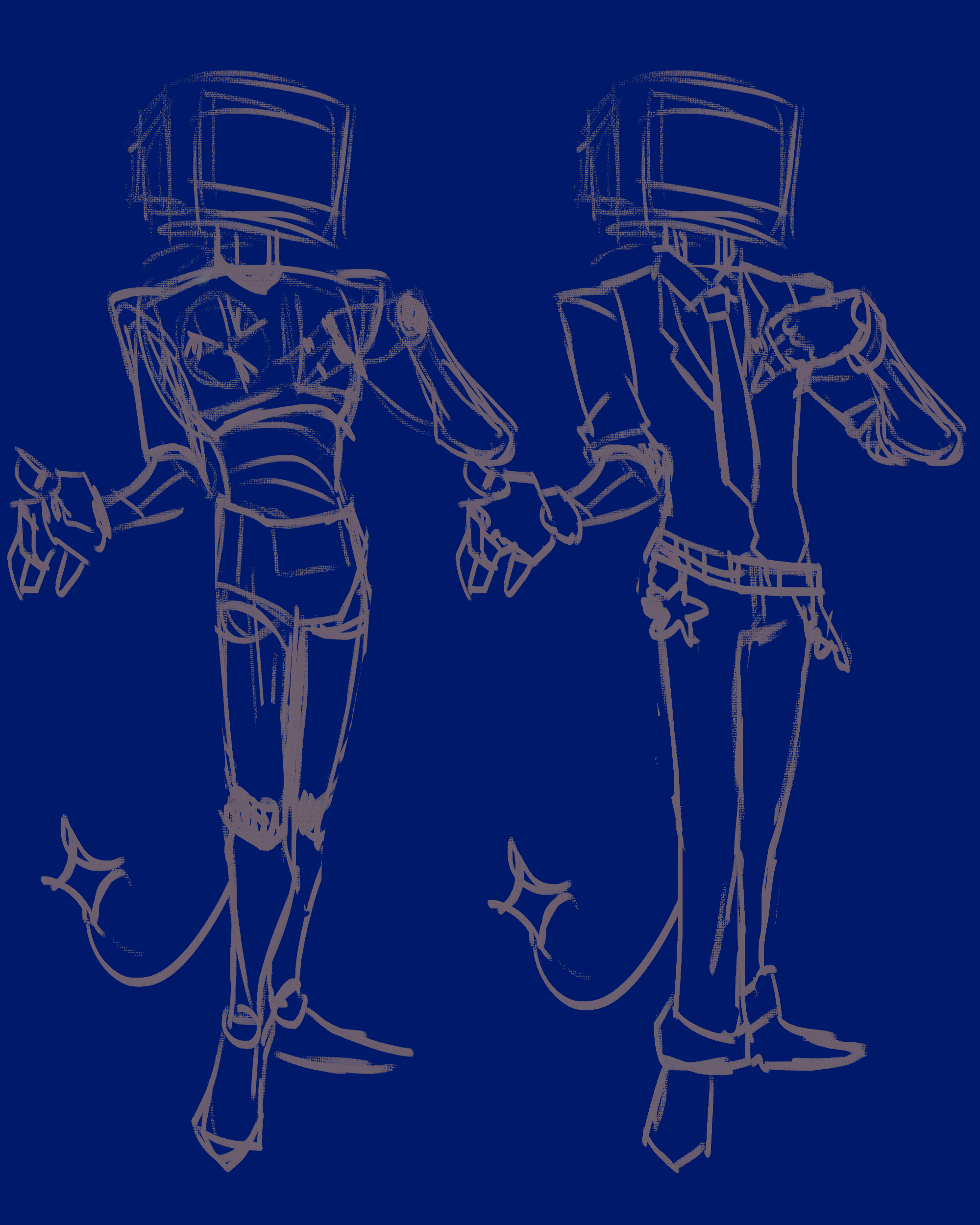 Another half-baked idea I had was their actual identities getting out to the government because they don't really care to keep it secret and them being tracked down. It's moslty just an idea so I could play around with the way they moved being "unnatural" and "uncanny" since they aren't actually human and I think some kind of fighting would be the best way to show that.